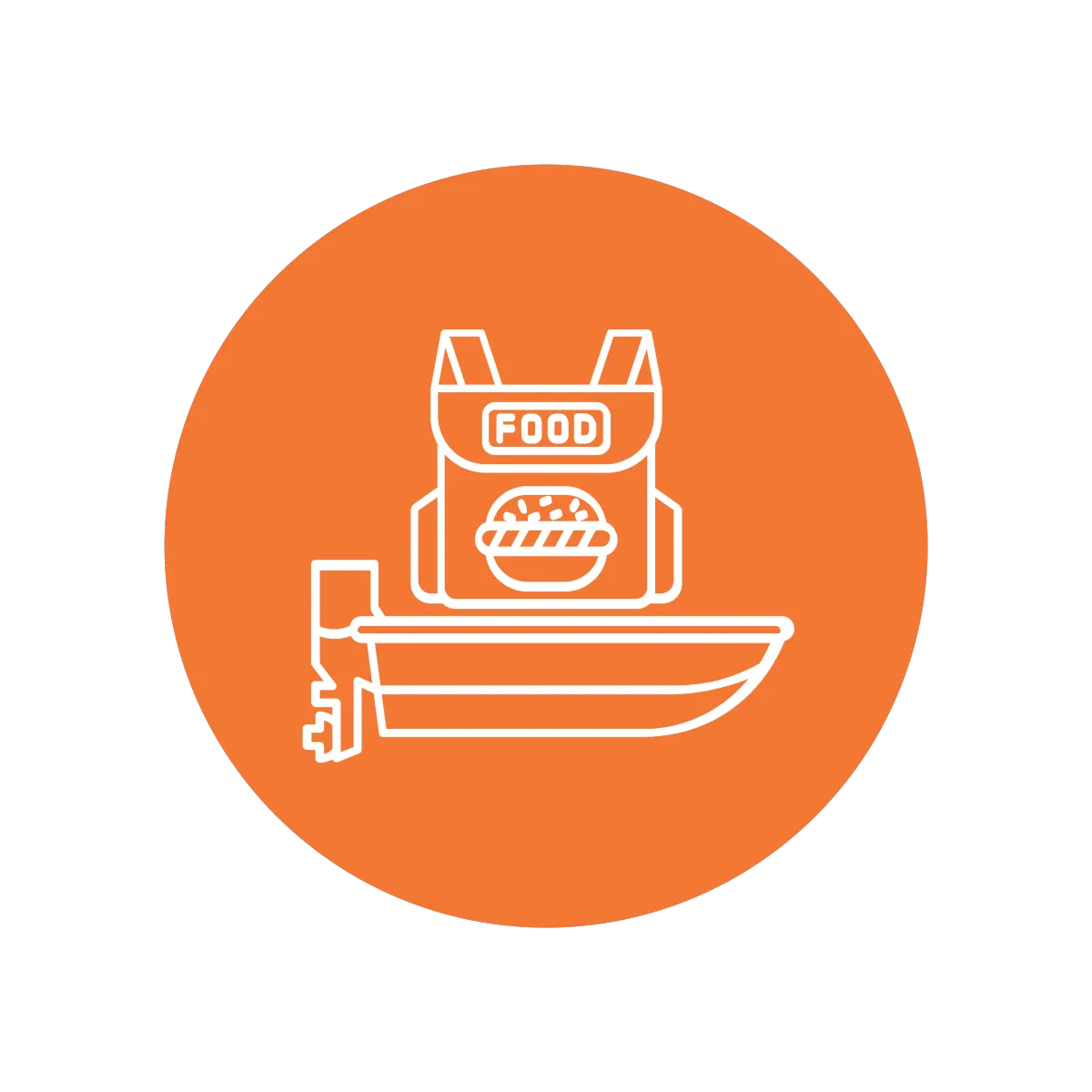 Our boat has built-in coolers and heating bags. Your food stays HOT and your drinks stay COLD. We treat your food like it's going to our own table!